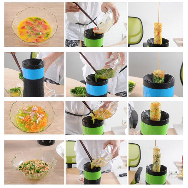 Bằng cách khai thác sức mạnh mới của Công nghệ Nấu ăn theo chiều dọc.Máy Làm Trứng Cuộn này tạo ra trứng chín một cách đều, thơm ngon , mềm và được làm chín một cách hoàn hảo . Và chỉ trong vài phút. Đơn giản chỉ cần cho buồng bên trong một spritz nhẹ dầu ăn, sau đó chỉ cần đập trứng ra và đổ vào bên trong khoang. Khi trứng đã chín, nó dần dần bắt đầu nổi lên trên, lúc này bạn nhìn nó sẽ giống như 1 cái xúc xích hoặc 1 cái kem vậy, thật thú vị đúng không nào