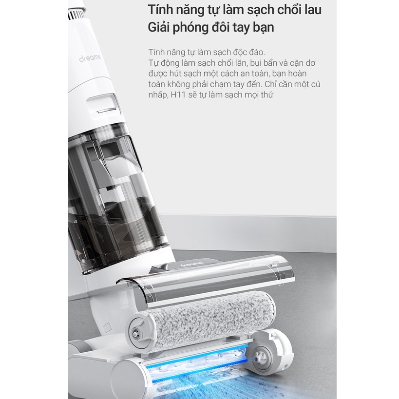 Dreame H11 mạnh mẽ với khả năng hút, lau và làm sạch sàn chỉ trong 1 lần thao tác. Kể cả vết bẩn khô hay ướt đều được máy xử lý gọn, nhanh và đơn giản. Dreame cho biết, chổi lăn có khả năng tự làm sạch chỉ bằng một nút nhất duy nhất. Chính nhờ vào điều này mà người dùng hoàn toàn không cần phải động tay vào việc giặt rửa thiết bị.