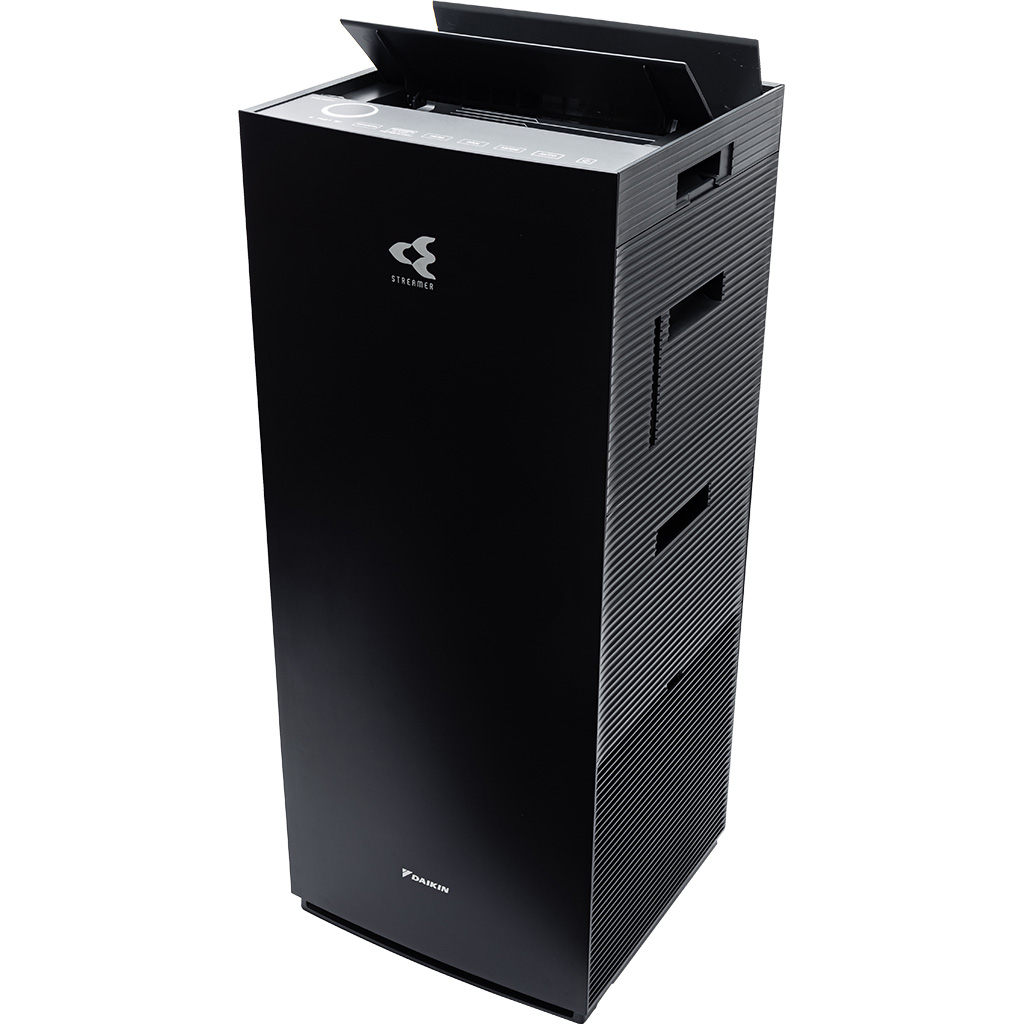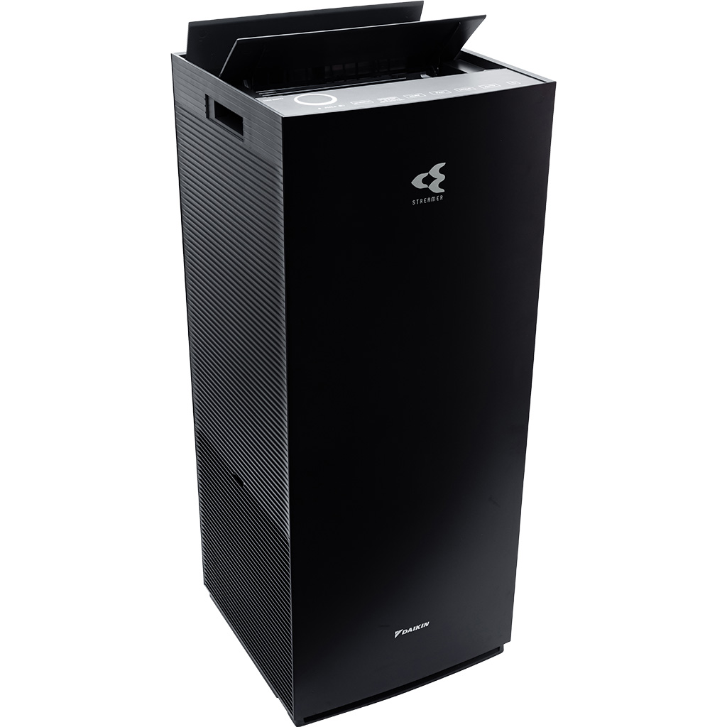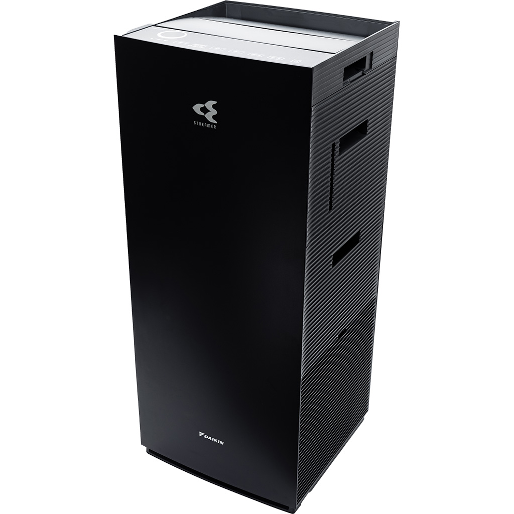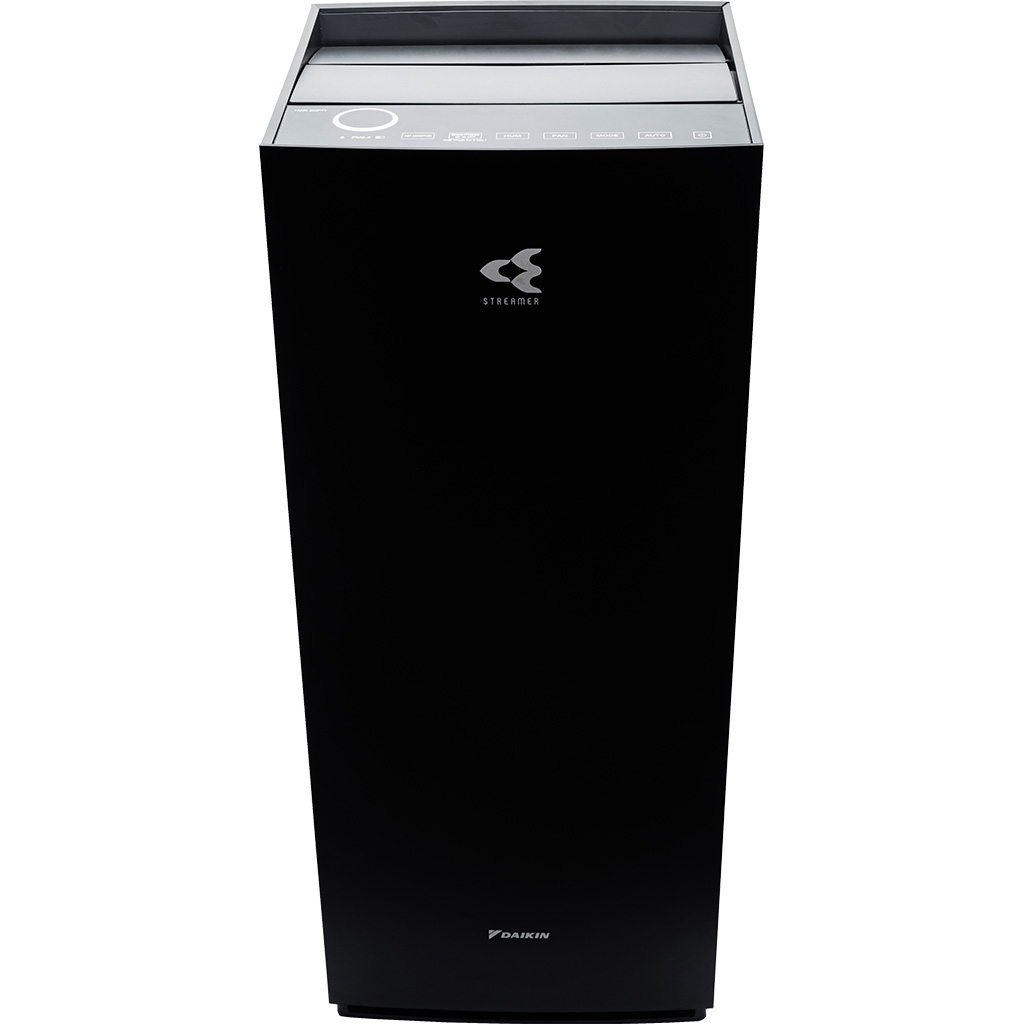 Máy lọc không khí Daikin diện tích lọc khí lớn lên đến 48m² 3 lớp phin lọc tuổi thọ cao: 1. Phin lọc bụi thô 2. Phin lọc mùi không cần thay thế 3. Phin lọc bụi TAFU HEPA hiệu suất cao chống thấm nước và dầu, lọc sạch đến 99.97% bụi 0.3µm , tuổi thọ đến 10 năm Twin Streamer: phóng điện plasma gấp đôi, nâng cao hiệu quả chiếu xạ lên bộ lọc, ức chế vi khuẩn, virus, các chất gây hại Công nghệ Twin Streamer ức chế các chất độc hại bên trong và Ion plasma ức chế các chất gây hại lơ lửng trong không khí Có chức năng tạo ẩm với nhiều chế độ Yên tĩnh/thấp/tiêu chuẩn/turbo và Phin tạo ẩm hiệu quả lên đến 10 năm Đèn báo chất lượng không khí Daikin-Eye: hiển thị tình trạng không khí gồm PM2.5/nhiệt độ/độ ẩm Đèn cảm biến giúp cảm biến độ ẩm, các hạt bụi PM2.5 và mùi trong không khí Thiết kế hình tháp thông minh, hút gió 3 hướng để lọc sạch rồi tuần hoàn khí sạch khắp phòng Vận hành cực kỳ êm ái với độ ồn tối thiểu chỉ 18dB ở chế độ Yên tĩnh