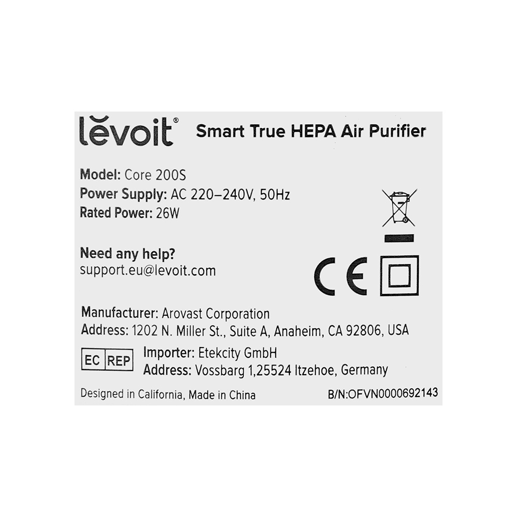 Máy lọc không khí Levoit Core 200s thương hiệu Levoit của Mỹ với thiết kế nhỏ gọn, lọc hiệu quả cho không gian dưới 35m2, kết nối với ứng dụng VeSync để làm mới không gian của bạn mà không cần rời khỏi chỗ ngồi, công nghệ QuietKEAP giúp giữ mức độ tiếng ồn thấp, không gây ảnh hưởng đến sinh hoạt của bạn, bộ lọc 3 lớp lọc hiệu quả 99.97% bụi mịn PM0.3 và khói thuốc, mùi hôi.•Thiết kế