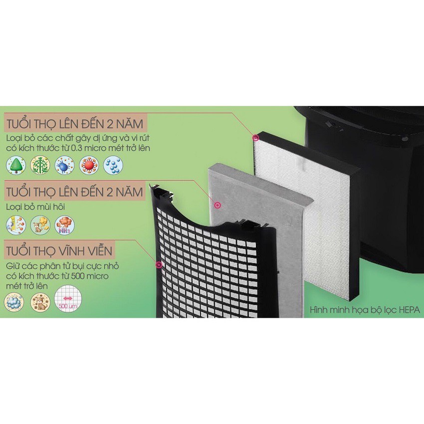 Số lượng lớp lọc: 03 lớp (Lọc thô, Lọc Hepa, Lọc Carbon)
