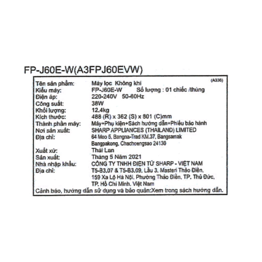 Thiết Bị Điện Gia Dụng > Thiết bị điện gia dụng nhỏ > Thiết bị xử lí không khí > Máy lọc không khí || [Mã ELHA22 giảm 5% đơn 300K] Máy lọc không khí Sharp FP-J60E-WCòn hàng