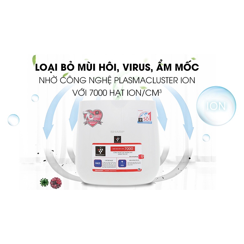 Mật độ ion 7000ion/cm3, Ngăn chặn và tiêu diệt các tế bào nấm mốc, tác nhân dị ứng, mùi hôi, virus và tái tạo phân tử nước trong không khí giúp không gian sạch thoáng, an toàn và mát mẻ.