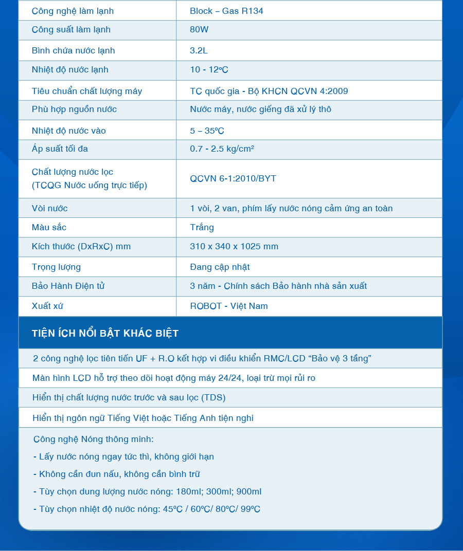 2. Chăm sóc nguồn nước với công nghệ “Bảo vệ 3 tầng” UF + RO - RMC/LCD từ ROBOT