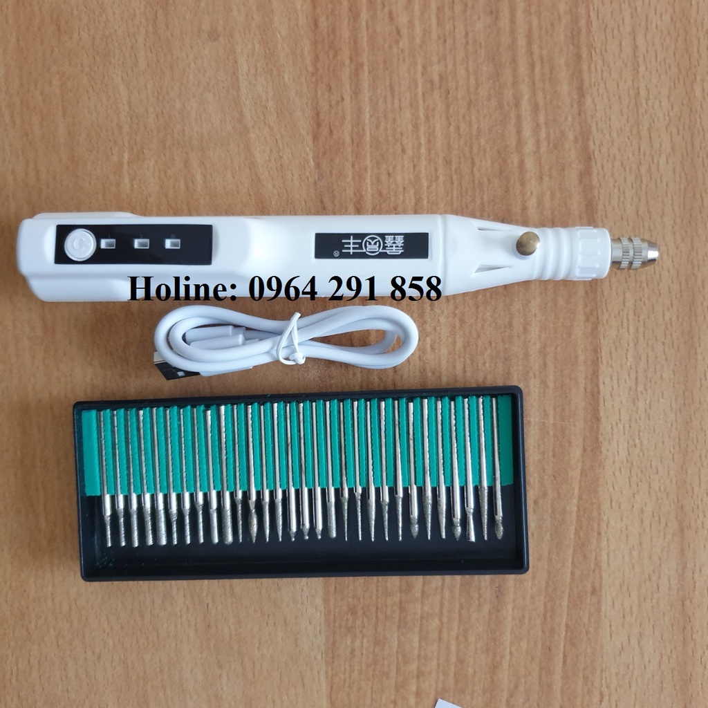 bao gồm: 1 máy, 1 dây sac(chưa có củ sạc), 30 mũi mài kim cương