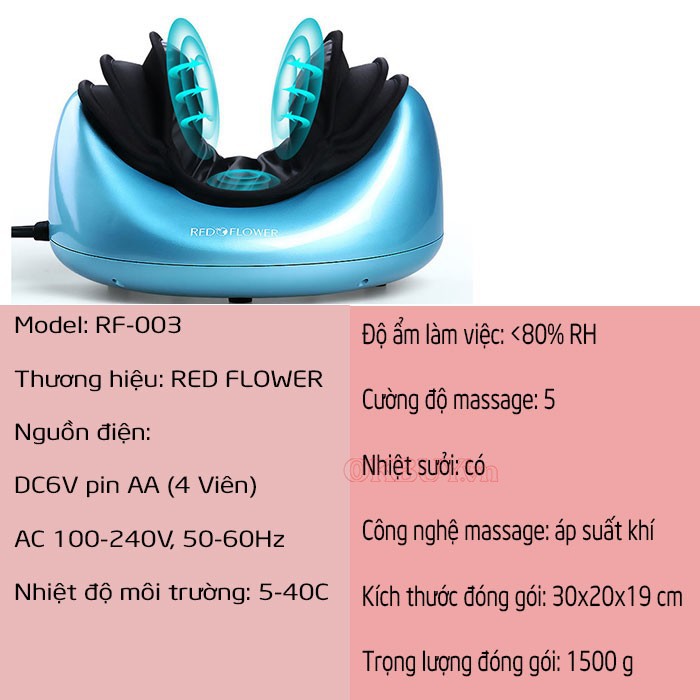 Thông số kỹ thuật Máy Massage cổ áp suất khí RED FLOWER RF-003: