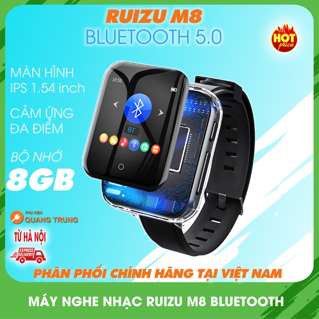 Phụ kiện quang trung kính chào quý kháchChúng tôi xin giới thiệu tới quý khách dòng sản phẩm máy nghe nhạc Ruizu M8 bluetooth bộ nhớ trong 8GB