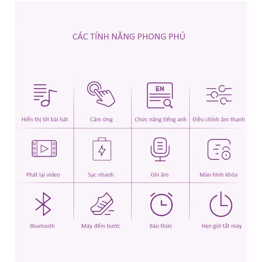 - Có khả năng lặp đoạn A-B, điều chỉnh tốc độ phát nhạc với 16 mức khác nhau, cùng khả năng ghi âm HD, vô cùng thuận tiện cho việc học tập hoặc giảng dạy ngoại ngữ.