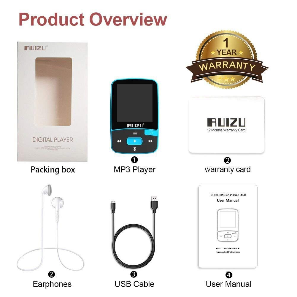 Máy nghe nhạc MP3 MP4 RUIZU X50 8GB 1.5in âm thanh HiFi không thất thoát hỗ trợ Bluetooth, FM và gắn thẻ TFMP3 đa chức năng này giúp bạn nghe nhạc, Radio FM, ghi âm, ghi lại dấu vết chuyển động, đọc sách điện tử, xem video và hình ảnh, xem thời gian và lịch, v.v. Chất lượng âm thanh HiFi không thất thoát làm nổi bật âm siêu trầm và cao độ trong thế giới âm nhạc. Bên cạnh đó, thiết kế kẹp tiện lợi để kẹp vào thắt lưng, trên túi áo để tránh bị rơi xuống.