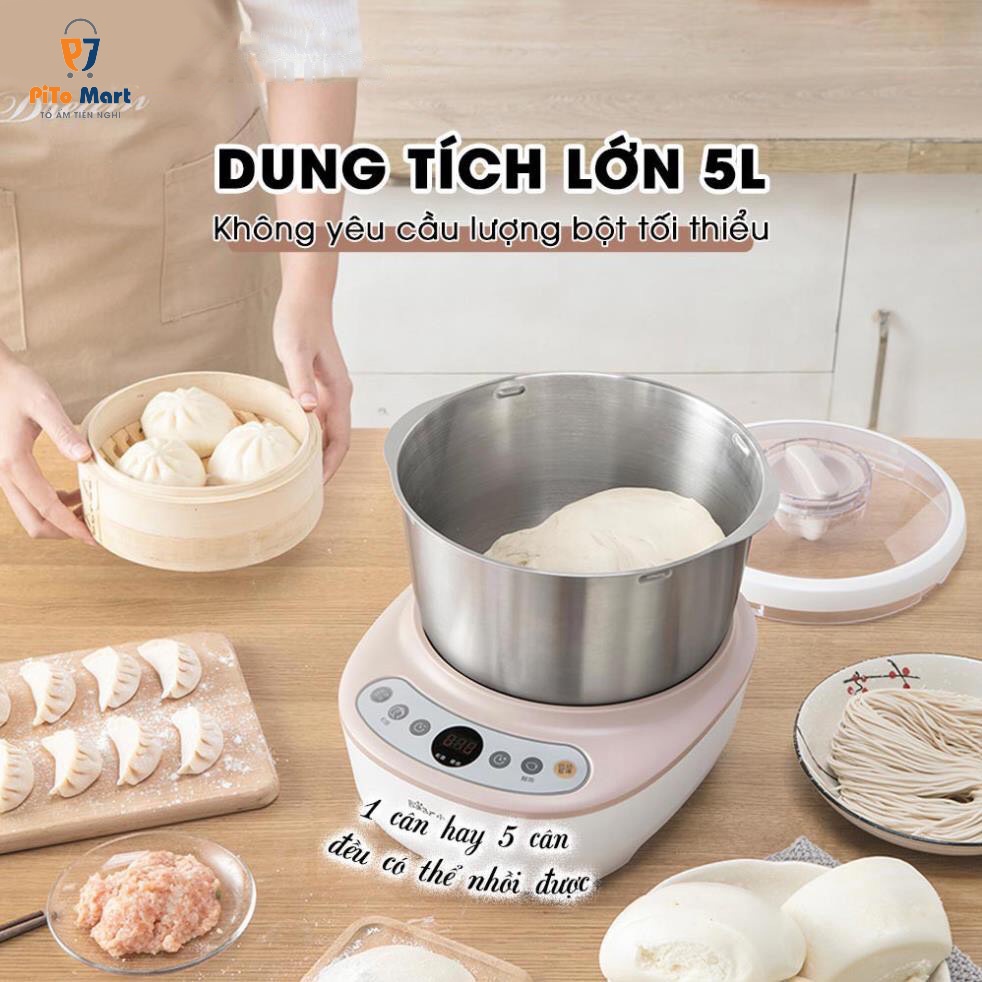 - Tô trộn của máy nhào bột Bear dung tích lớn 5L trộn được tối đa 2,5 kg bột khô.