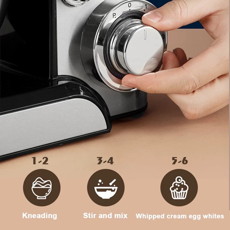 ⭐️ Điều khiển 6 tốc độ: Động cơ bằng đồng hiệu suất cao với 1200w và có 6 tốc độ có thể điều chỉnh để đánh các loại kem, trứng và trộn các loại bột khác nhau