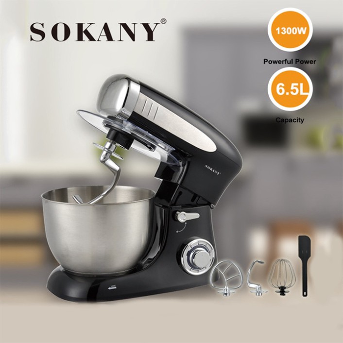 Máy nhào bột để bàn SOKANY là 1 sản phẩm cự kì tiện lợi và hữu ích cho tất cả chị em đam mê làm bánh cho gia đình máy có công suất nên đến 1300w, cối trộn 6.5L