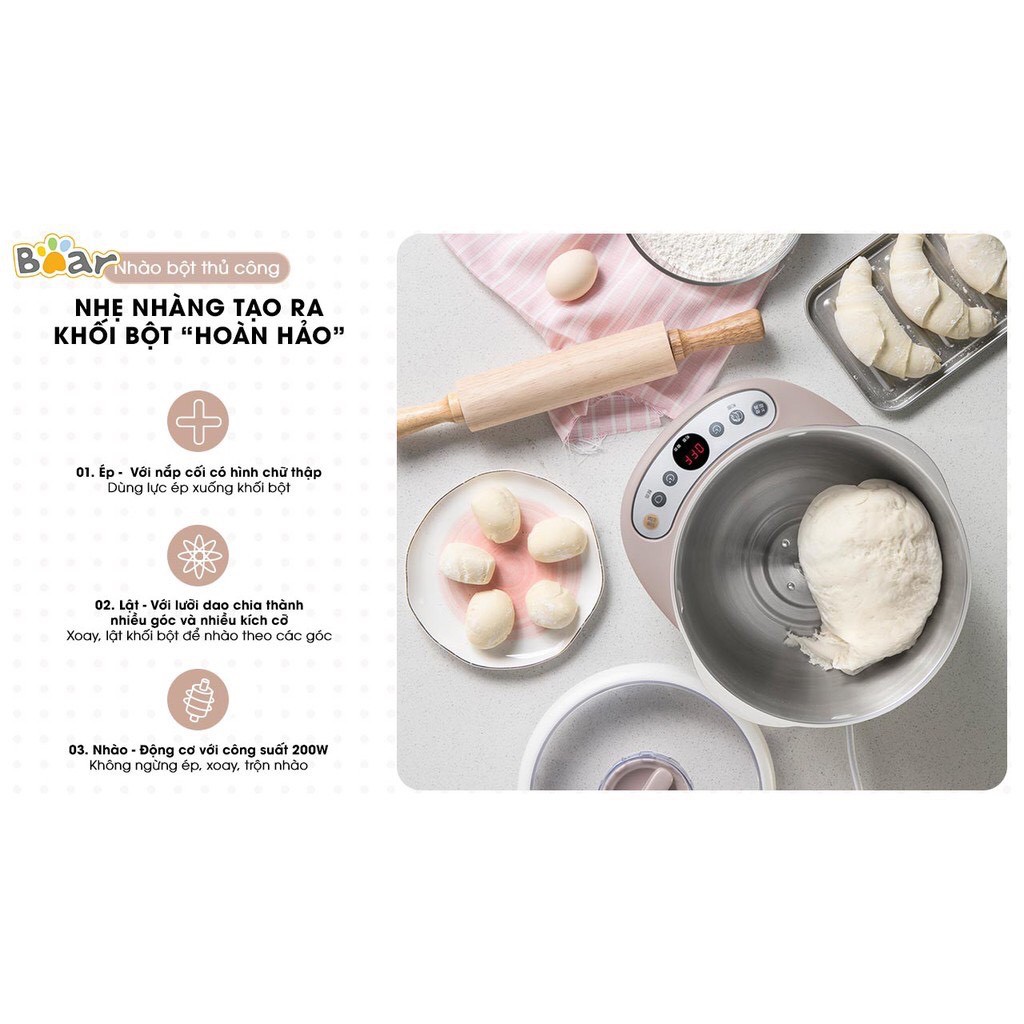Máy Nhào Bột Trộn Bột Tự Động BEAR Hàng Quốc Tế 3.5L DM-B35V1, 5L DM-B50V1-Thương hiệu đồ da dụng nổi tiếng của Trung Quốc Bear
