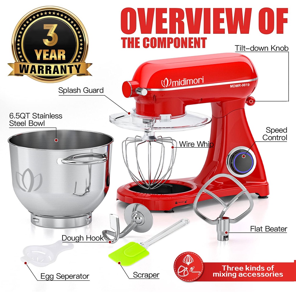 Thiết Bị Điện Gia Dụng > Đồ gia dụng nhà bếp > Máy trộn thực phẩm || Máy nhào trộn bột thân khung thép Midimori, MDMR-9819A (1800W) - Tặng 01 Máy xay thịt inox Midimori Chopper (500W)Còn hàng