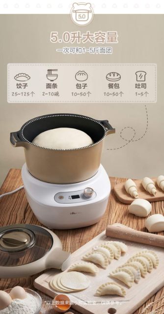 Máy nhồi bột bear 5 lít đời mới nhấtNhồi được 1 đến 1.2kg bột khô