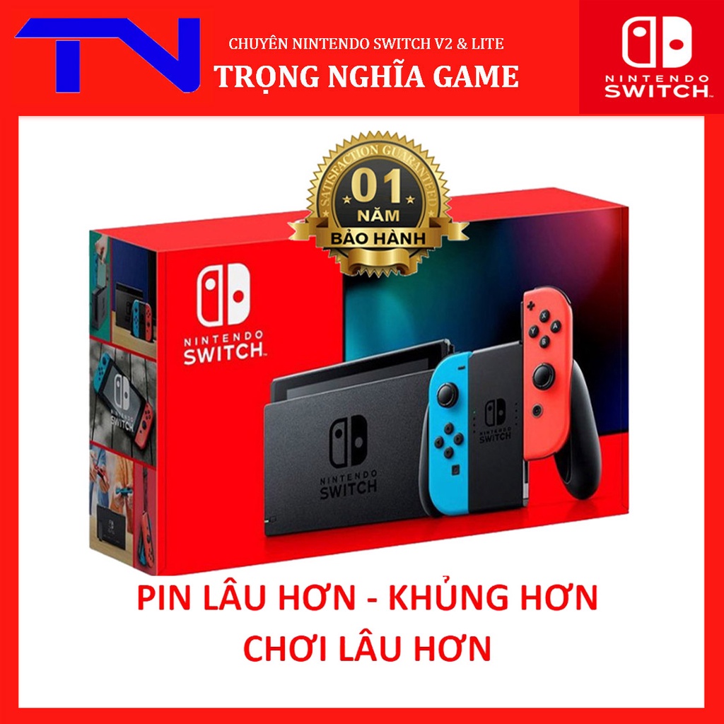 *************************BẢO HÀNH PHẦN CỨNG 3 THÁNG, PHẦN MỀM 12 THÁNG***************************Máy Nintendo Switch phiên bản mới New Model, với nâng cấp dung lượng thời gian pin khi chơi lên 4.5h đến 9h khi chơi liên tục tùy theo games [Thời gian chơi Zelda lên đến ~4h so với bản cũ ~ 2h30]. Đây là vấn đề cải thiện rất quan trọng mà tất cả game thủ đều mong muốn.