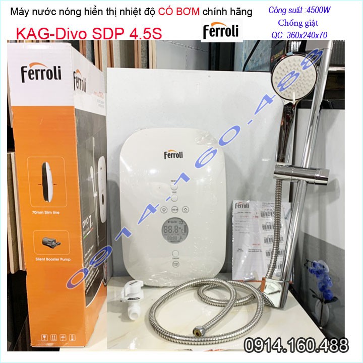 Máy nước nóng Ferroli SDP 4500W có bơm chống giật màn hình LED hiển thị nhiệt độ BestSales Direct water heater with pump