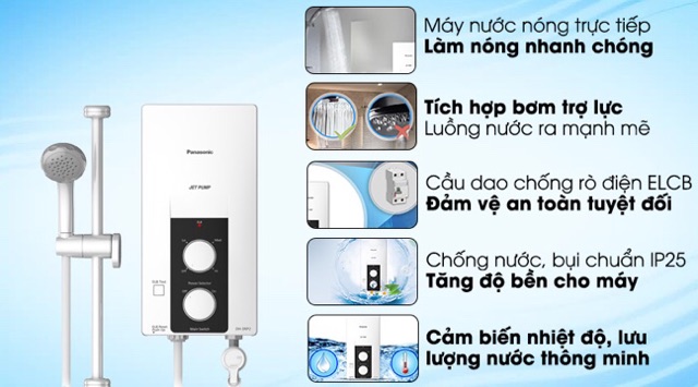 Giới thiệu Máy nước nóng Panasonic DH-3RP2VK có bơm, điều chỉnh mức nóng 3 cấp độ