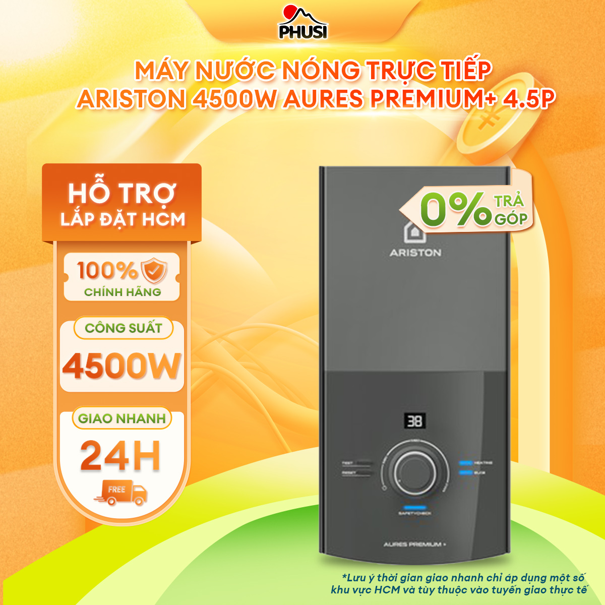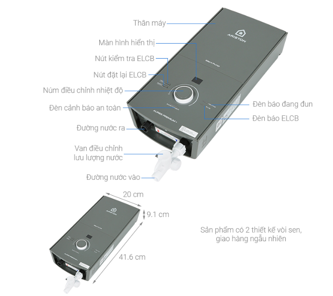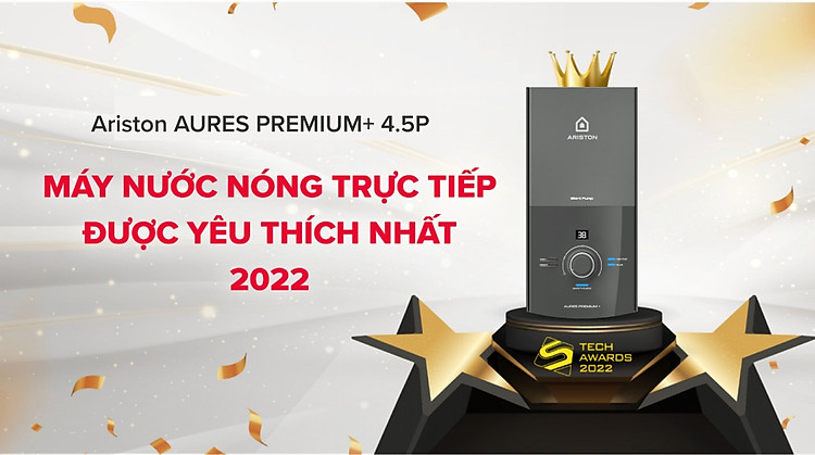 Giới thiệu Máy nước nóng trực tiếp Ariston 4500W AURES PREMIUM+ 4.5P, có bơm trợ lực, phù hợp miền Nam hoặc khu vực trên 20°C [Hàng Chính Hãng]