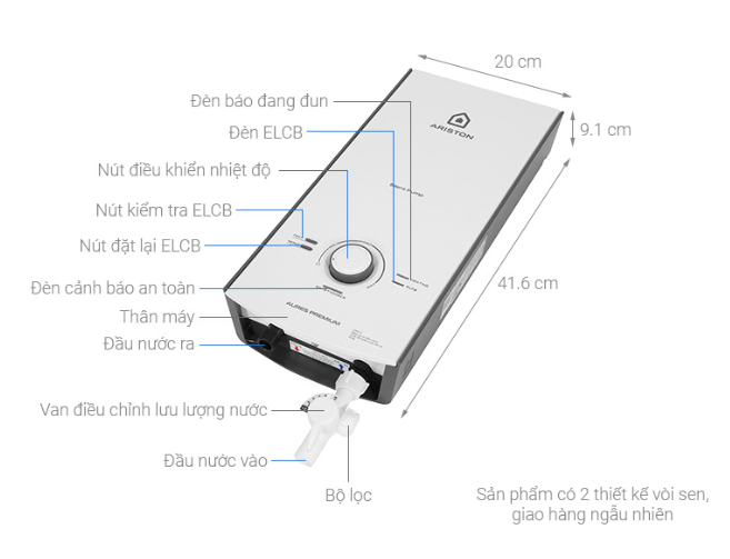 - Tiện ích khác:Cảm biến lưu lượng nước Bộ ổn định nhiệt kép Hệ thống Safety Check Vỏ bình nung làm từ vật liệu chống cháy Vỏ chống thấm nước IP25 Núm xoay điều chỉnh nhiệt độ Tuỳ chỉnh công suất làm nóng Van điều chỉnh lưu lượng nước