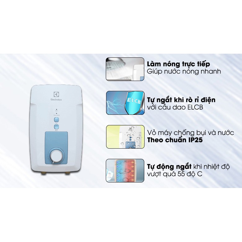 Thiết Bị Điện Gia Dụng > Thiết bị điện gia dụng lớn > Máy nước nóng || Máy nước nóng trực tiếp Electrolux EWE451GX-DWBCòn hàng