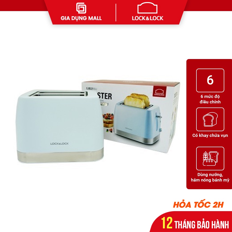 Máy Nướng Bánh Mì Lock& Lock EJB221BLU (700W) - BH 12 tháng - Hàng Chính hãng
