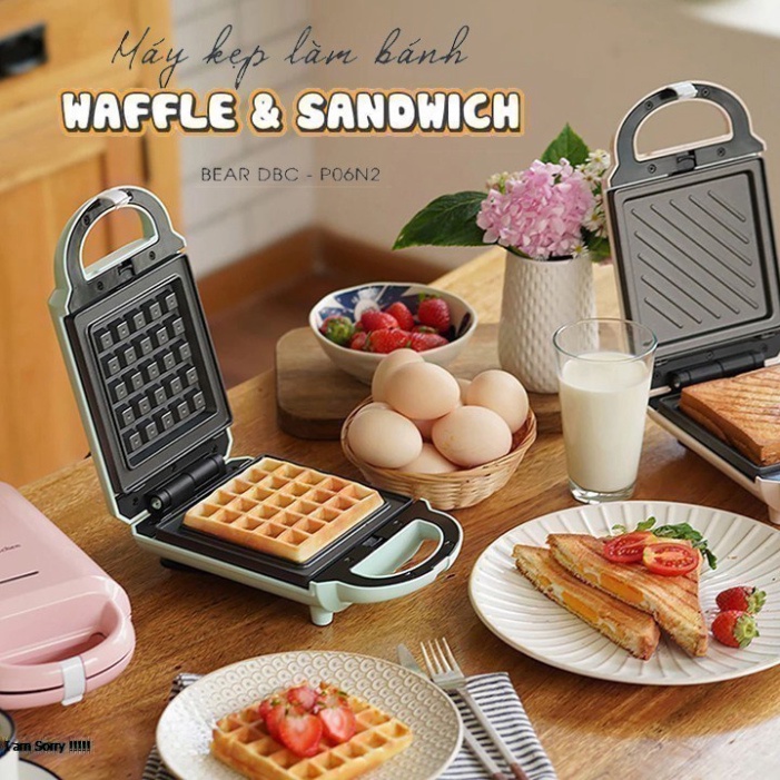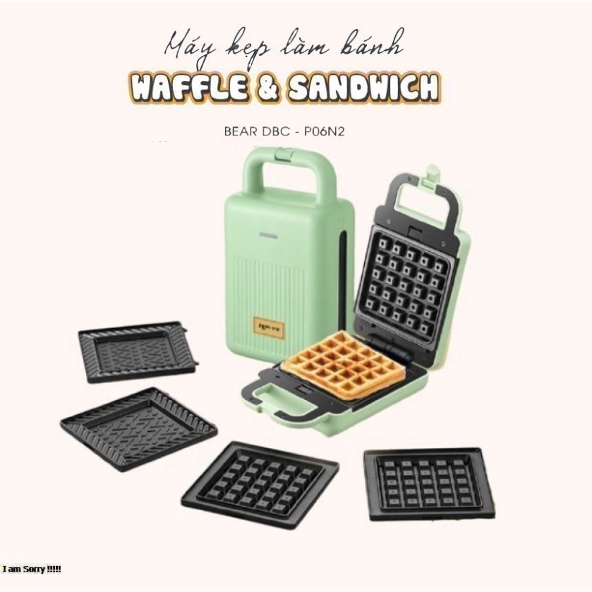 - Máy kẹp nướng bánh Bear có 2 loại vị thay thế: vỉ sandwich & vỉ wafle