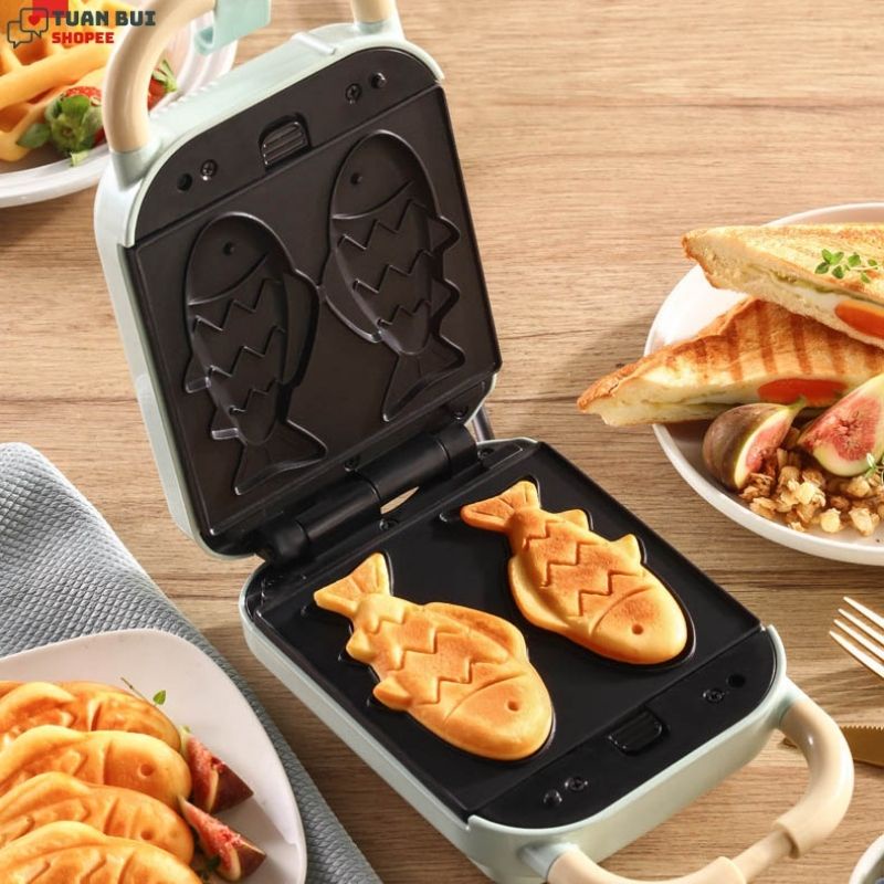 - Máy tháo được khuôn để vệ sinh- Có 4 loại khuôn khách có thể mua kèm để làm bánh vô cùng tiện lợi: Sandwich, donut, waffle, hình cá.