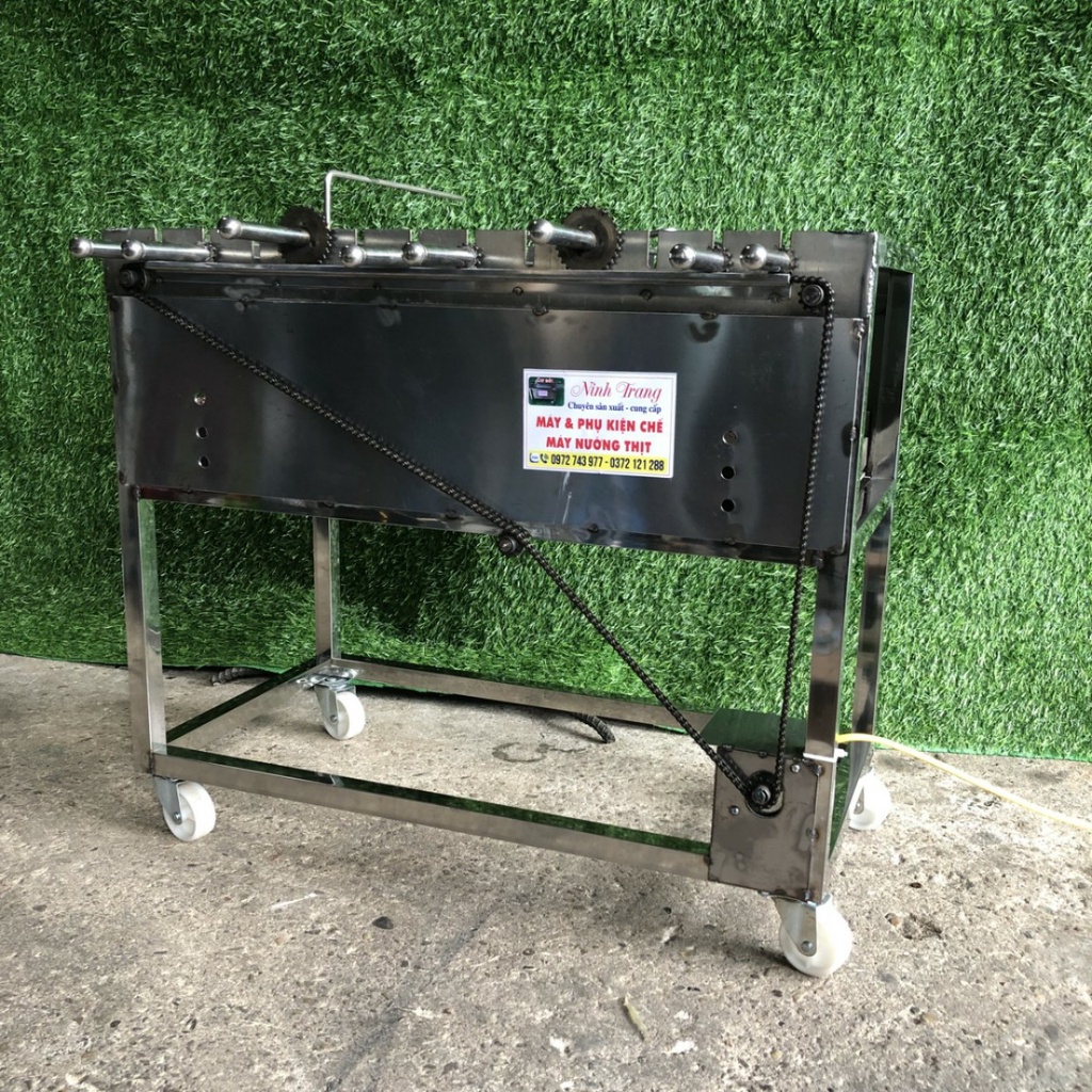 Máy nướng thịt, chả, gà, vịt quay tự động 12 xiên - Máy nướng inox - Bếp nướng than hoa