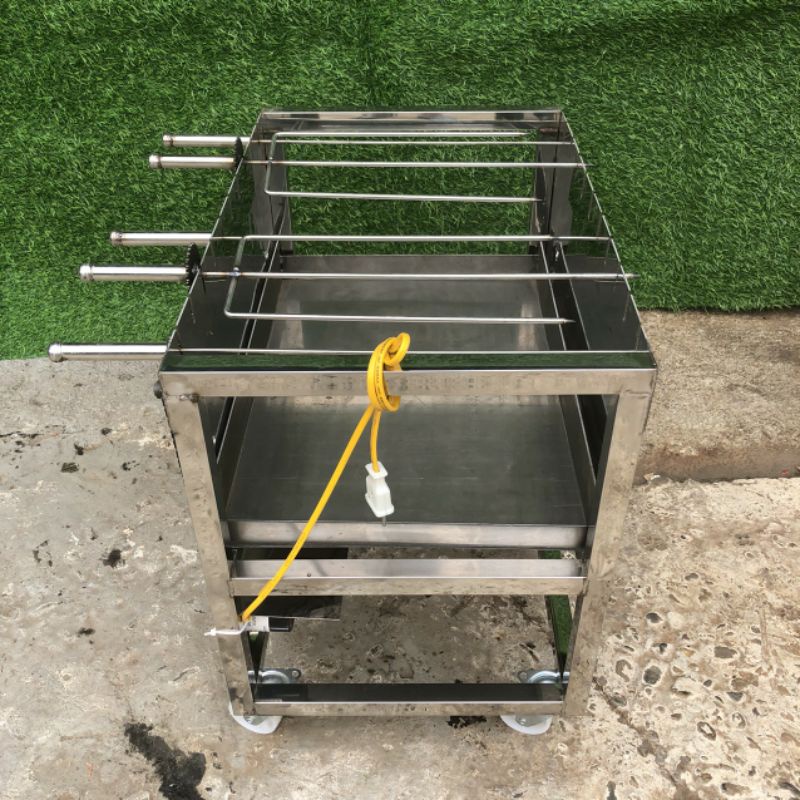 Nhà cửa & Đời sống > Dụng cụ nhà bếp > Lò nướng & phụ kiện || Máy nướng thịt chả mini Lò quay gà vịt mô tơ tự động bếp nướng than hoa inox 10xiên (kèm 10 xiên đơn và 2 xiên gà)Còn hàng