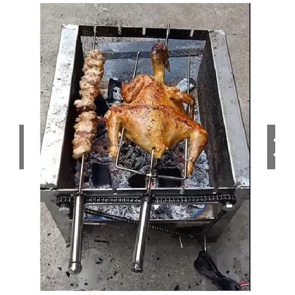 Máy nướng thịt than hoa lò quay gà vịt mini bằng mô tơ tự động chuẩn (xiên 100% inox, đi kèm máy)Một chiếc MÁY NƯỚNG THỊT MINI tại nhà giúp giảm rất nhiều công sức và thời gian trong việc chế biến món ăn. Máy sử dụng mô tơ tự động nên rất tiện lợi, vừa dùng như một MÁY NƯỚNG THAN HOA nướng thịt,chả,cá tôm...vừa dùng như một LÒ QUAY GÀ VỊT.
