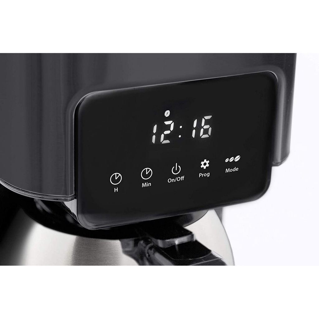 - Máy pha cà phê có bình chứa thủy tinh khả năng giữ nhiệt cao, dung tích chứa đến 1,2 lít tương đương với 10 tách cà phê, thoải mái cho nhu cầu sử dụng hàng ngày.