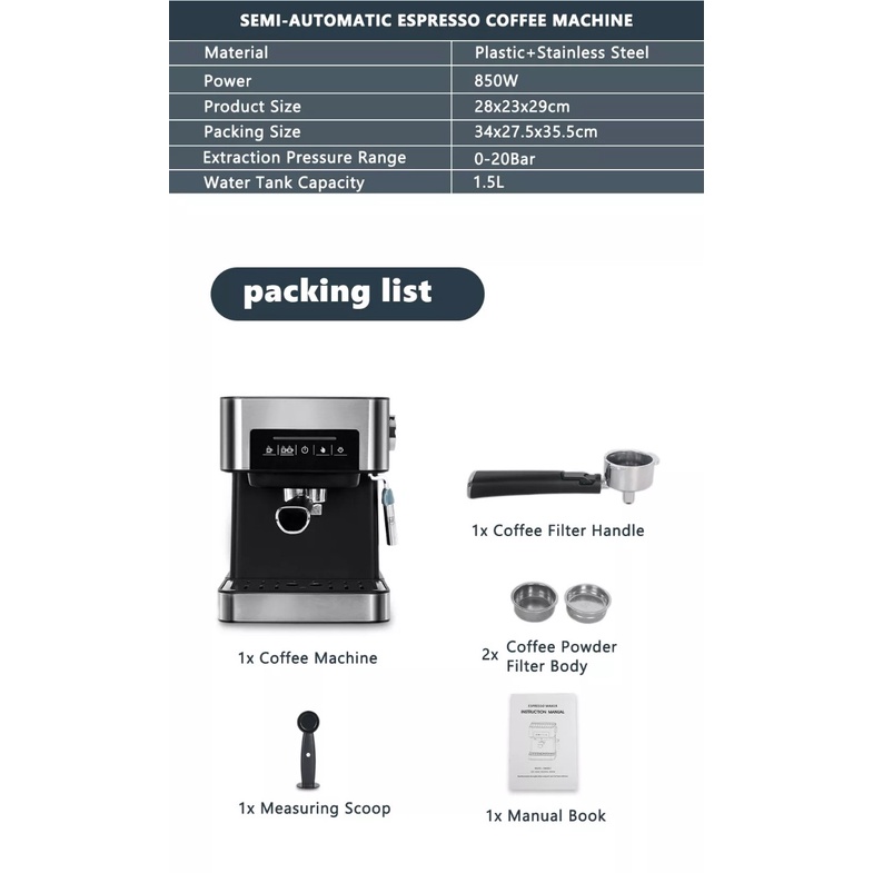 Thiết Bị Điện Gia Dụng > Đồ gia dụng nhà bếp > Máy pha cà phê & Phụ kiện || Máy pha cà phê CREMA SILVER IT-6863 20Bar - Home and GardenCòn hàng