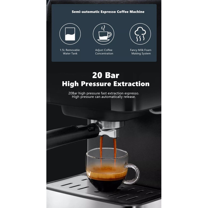 Máy pha cà phê CREMA SILVER IT-6863 20Bar - Home and Garden