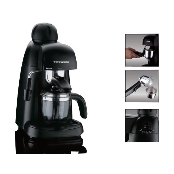 Máy pha cà phê Espresso 4 cốc tiross TS620 800W, TS621 800W, TS6211 15bar + Tặng 500gram cafe