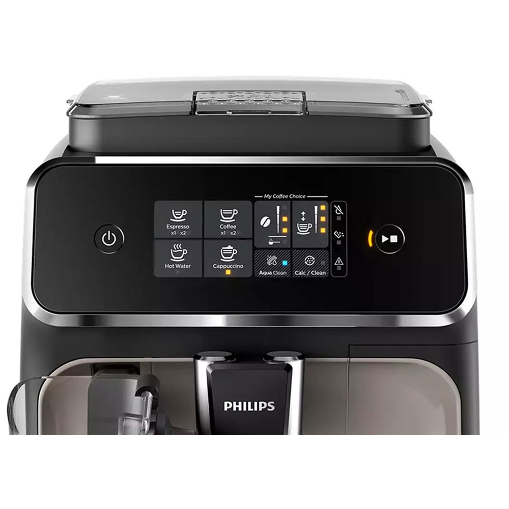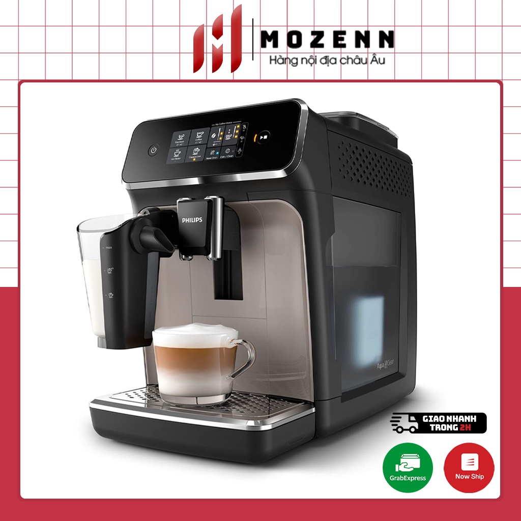 MÁY PHA CÀ PHÊ HOÀN TOÀN TỰ ĐỘNG PHILIPS SERIES 2200 EP2235/40Với Máy pha cà phê hoàn toàn tự động Philips Series 2200 EP2235/40, màn hình cảm ứng, bạn có thể thưởng thức hai đặc sản cà phê thơm ngon (espresso, cà phê) từ hạt cà phê tươi chỉ bằng một nút bấm. Bạn có thể dễ dàng chuẩn bị một ly cappuccino kem hoặc latte macchiato bằng cách tự tay làm sữa. Máy pha cà phê Philips giúp bạn thưởng thức nhiều loại cà phê chất lượng được làm từ hạt cà phê tươi ngay tại nhà.