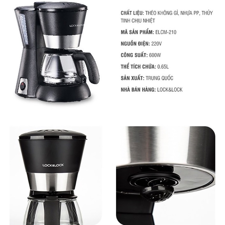 Máy Pha Café Hiệu Lock&Lock 0.65L ELCM210- Thương hiệu: Chính hãng Lock&Lock