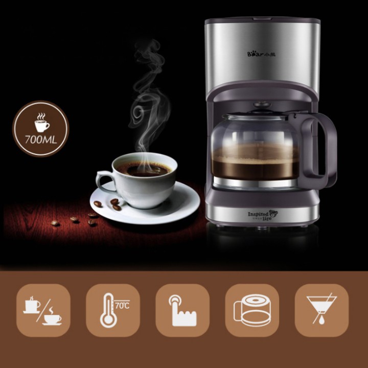 Máy pha cà phê, máy pha trà tiện dụng Bear dung tích 700 ml