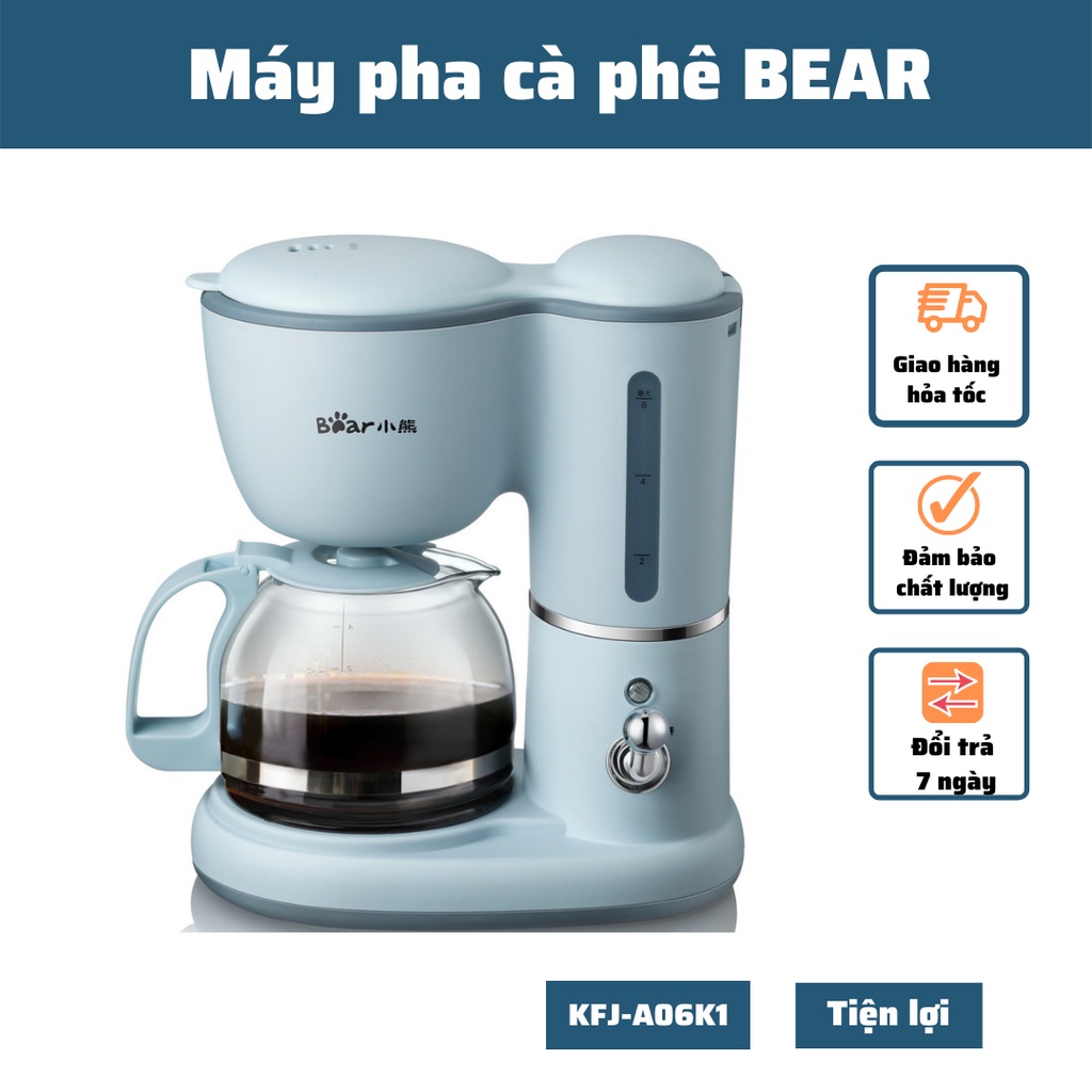 Máy pha cà phê Bear KFJ-A06K1 là dòng máy pha bán tự động, pha cà phê khá nhanh, chỉ mất khoảng từ 1 - 2 phút bởi dòng máy này sử dụng cà phê bột pha là chủ yếu. Rất phù hợp cho nhu cầu của các gia đình để có thể thưởng thức một ly cà phê nguyên chất chính hiệu mà không phải mất thời gian ra quán để tụ tập.