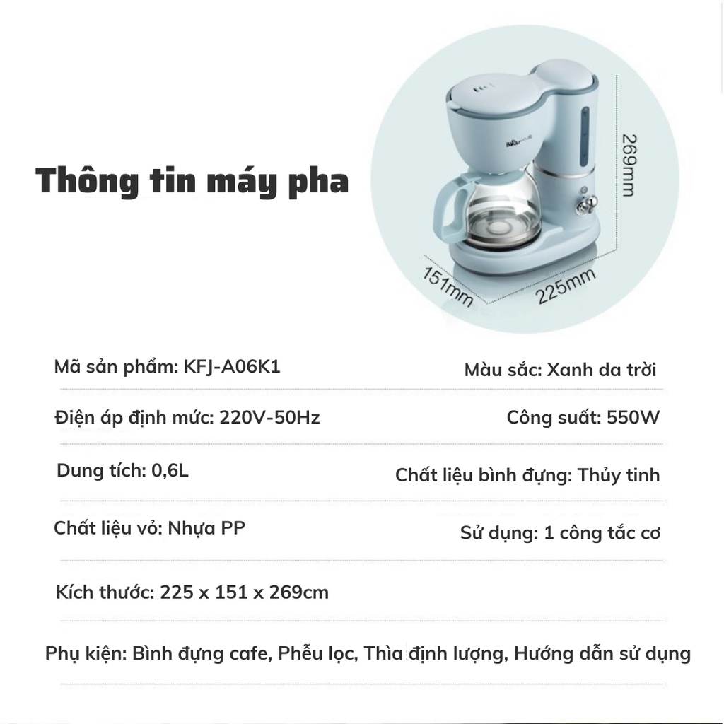 Máy pha cà phê mini Bear KFJ-A06K1 chính hãng máy pha cafe viên nén Espresso tặng kèm 100gr bột café Arabica