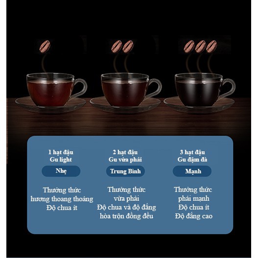 ✅Ba chế độ đặc của hương vị cà phê pha ra : loãng, vừa, mạnh tùy theo gu mỗi người
