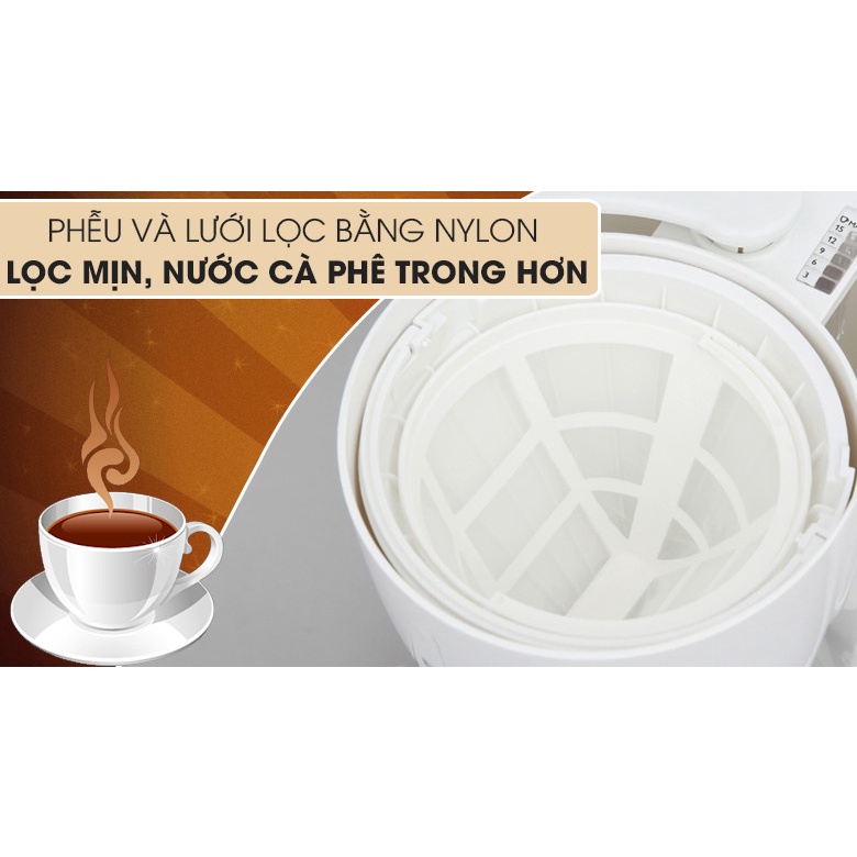 - Kèm theo đó là đèn báo LED cho biết máy đang hoạt động và tay cầm rộng rãi để bạn dễ di chuyển và rót cà phê ra tách.