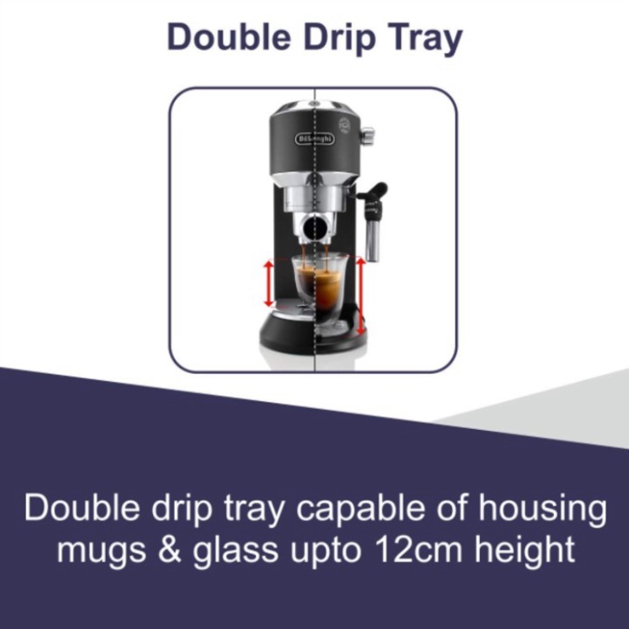 - Máy pha cà phê được làm từ chất liệu cao cấp, vừa bảo đảm an toàn vì không sản sinh ra các chất độc hại khi pha cà phê, vừa giữ được sự độ mới, giúp kéo dài tuổi thọ cho sản phẩm. Kim loại bóng bẩy, những phím cảm ứng mờ và biểu tượng nổi trên mặt khay tạo mang đến sự đa dạng phong cách cho thiết kế độc nhất của Dedica.