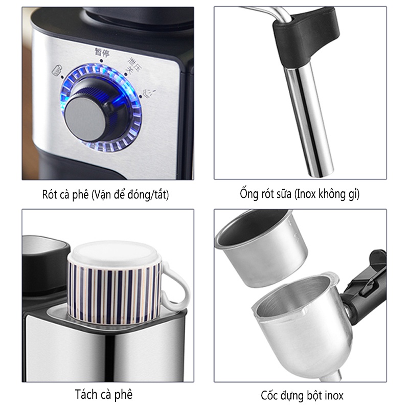 Máy có thiết kế đơn giản, dễ sử dụng và có các chức năng pha espresso, cappuccino ( kết hợp với đầu đánh bọt sữa)
