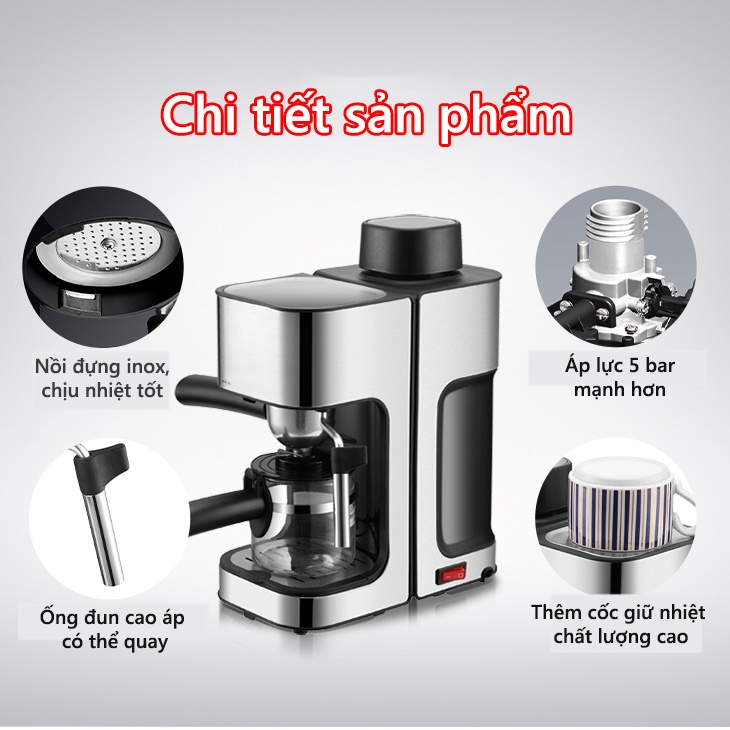 Máy Pha Cà Phê Tự Máy Pha Cafe Mini Cho Hộ Gia Đình Và Văn phòng-Tiện lợi, Sang trọng - Hạn bảo hành 6 tháng