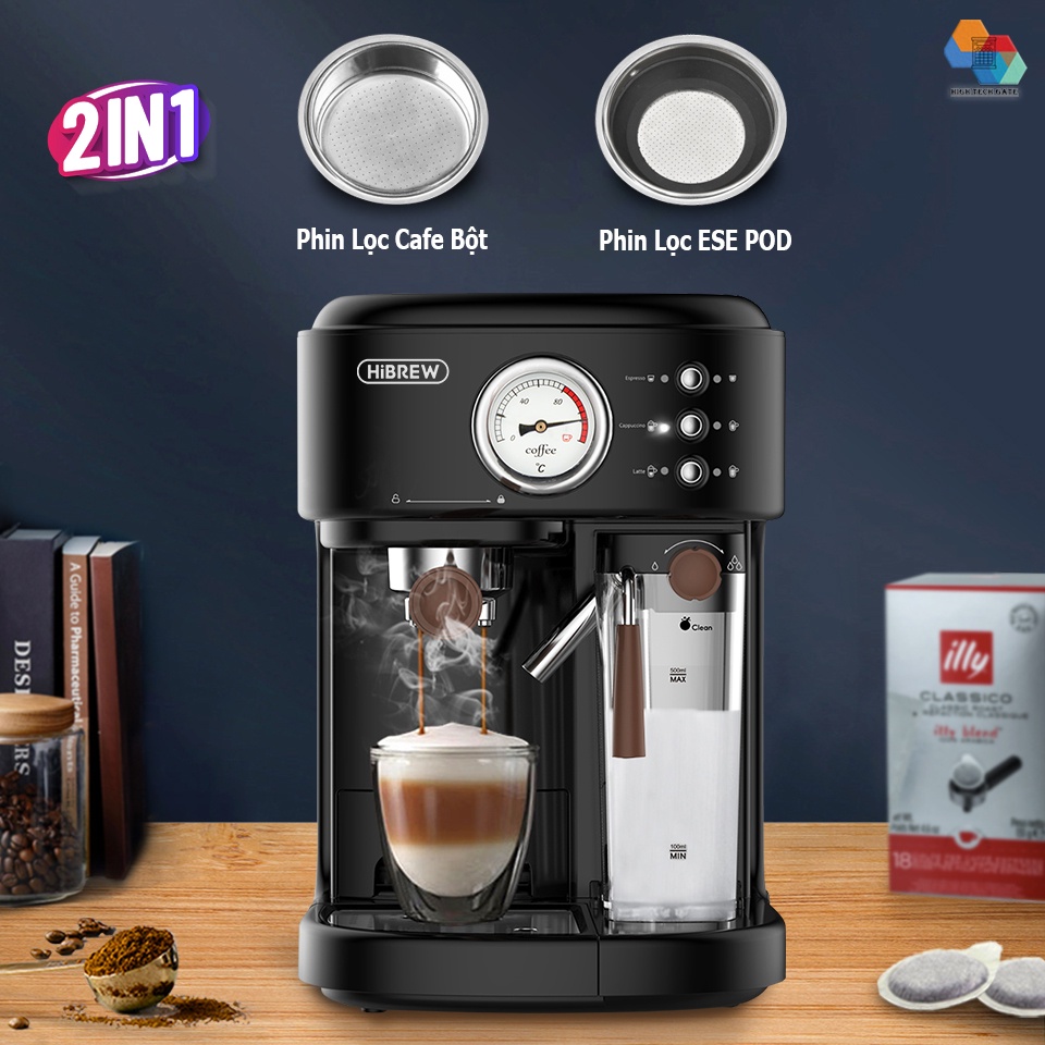 máy pha cafe Hibrew H8A tự động đánh sữa pha Cappuccino hay Latte, áp suất 19 bar mạnh mẽ, kiểm soát nhiệt NTC chuẩn xác