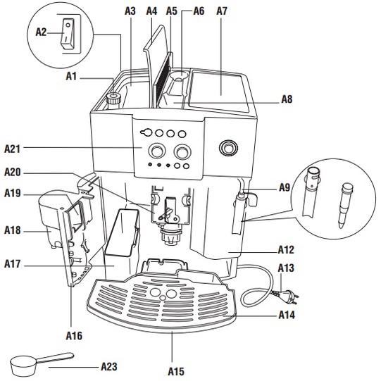 - Ngăn đựng cà phê bột (n°): 14/72h
