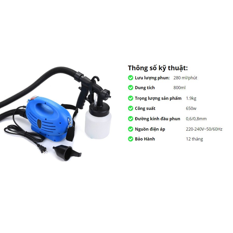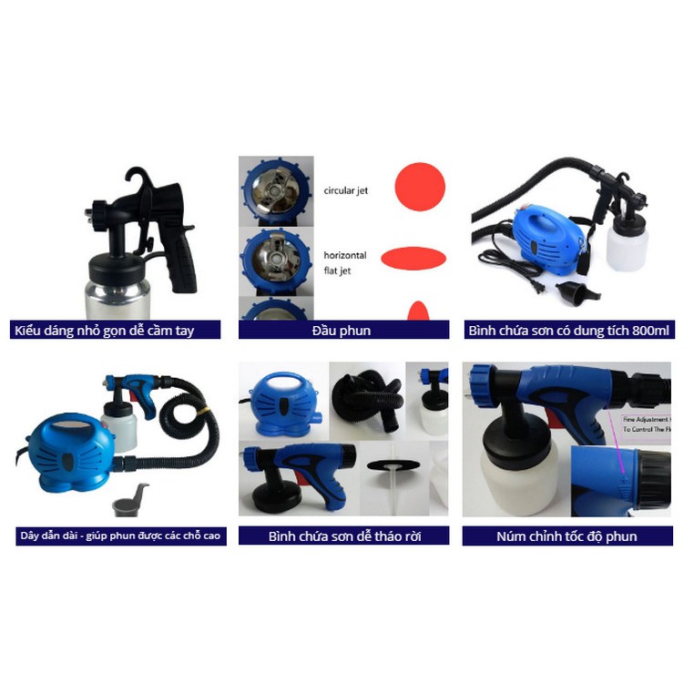 + Bình chứa sơn dung tích lớn 800ml , đầu sơn tích hợp 3 kiểu sơn cực kì tiện lợi giúp cho sơn mọi thứ nhanh, dễ dàng, sơn đều mịn mọi chỗ