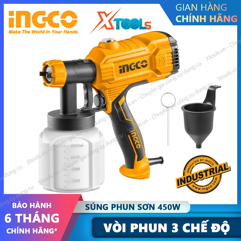 Máy phun sơn INGCO SPG3508 Công suất 450W, Súng phun sơn áp suất 0.1-0.2bar, bình chứa 800ml, kèm 1 cốc đo lường độ nhớt