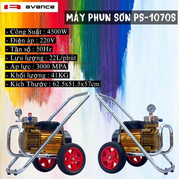 Máy phun sơn Avance PS-1070S là dòng máy phổ thông của hãng, có công suất lớn lên tới 4500w, áp suất máy mạnh mẽ tạo ra tia sơn tơi hơn tạo cho bề mặt sơn mịn, tiết kiệm lượng sơn. Ngoài ra máy có thể đủ áp lực dùng cho 2 nhánh phun sơn cùng 1 lúc, giúp nhanh chóng hoàn thành công việc, tiết kiệm thời gian khi thi công.